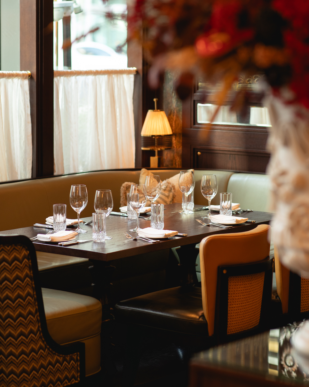 A full 1970s Milanese love affair with velvet, candlelight, and a “Tunnel of Love” entrance. Menu is à la carte (so you can go big or keep it casual), plus a special pink cocktail Love at First Pop (AED 70) and a Raspberry Tiramisù moment (AED 61). Open late, no minimum spend — which we always love for Valentine’s flexibility.
