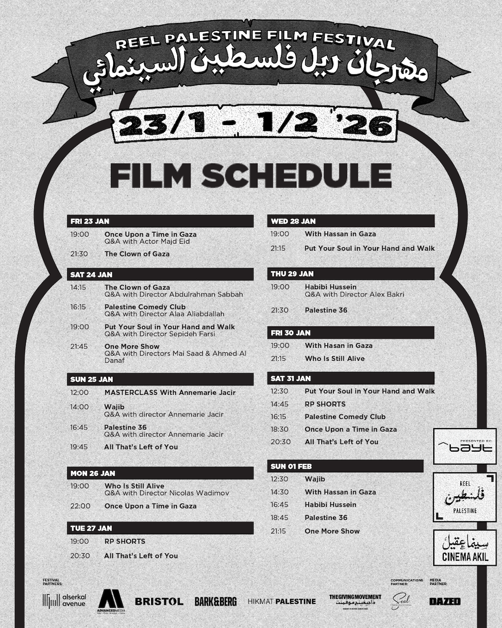 Reel Palestine runs from 23 January to 1 February 2026 at Cinema Akil. Tickets and the full programme are available via cinemaakil.com.