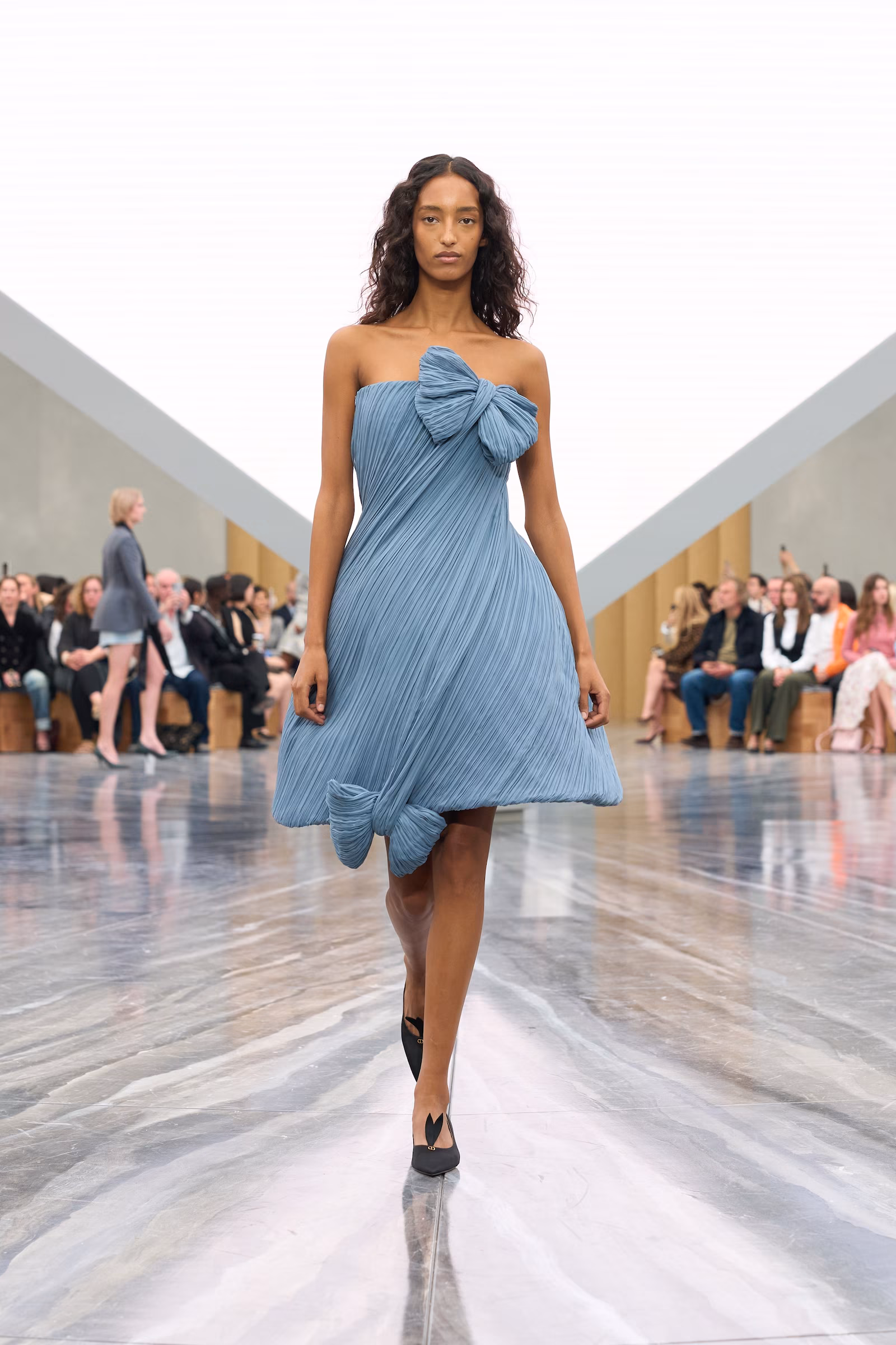 The outcome was equal parts quirky, novel and artful. Origami-infused folds, relaxed denim, plissé dresses and bar jackets like we’ve never seen before (cutout, cartoonish or adorned with bows) populated the runway. The 74 looks spanned the wardrobe of a modern-day woman who balances spontaneity with playful elegance. There was so much Anderson and enough Dior to make this one of the best debuts in a season packed with creative shake-ups.