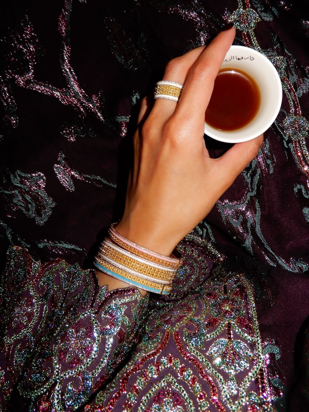 Each piece begins as a painting, translating colour, texture and emotion into form. The result feels layered, expressive, and slightly unexpected. There’s no attempt to fit within traditional ideas of fine jewellery, and that’s exactly where its strength sits.
